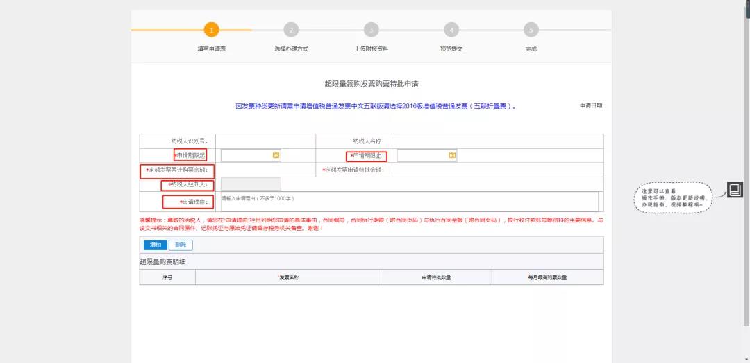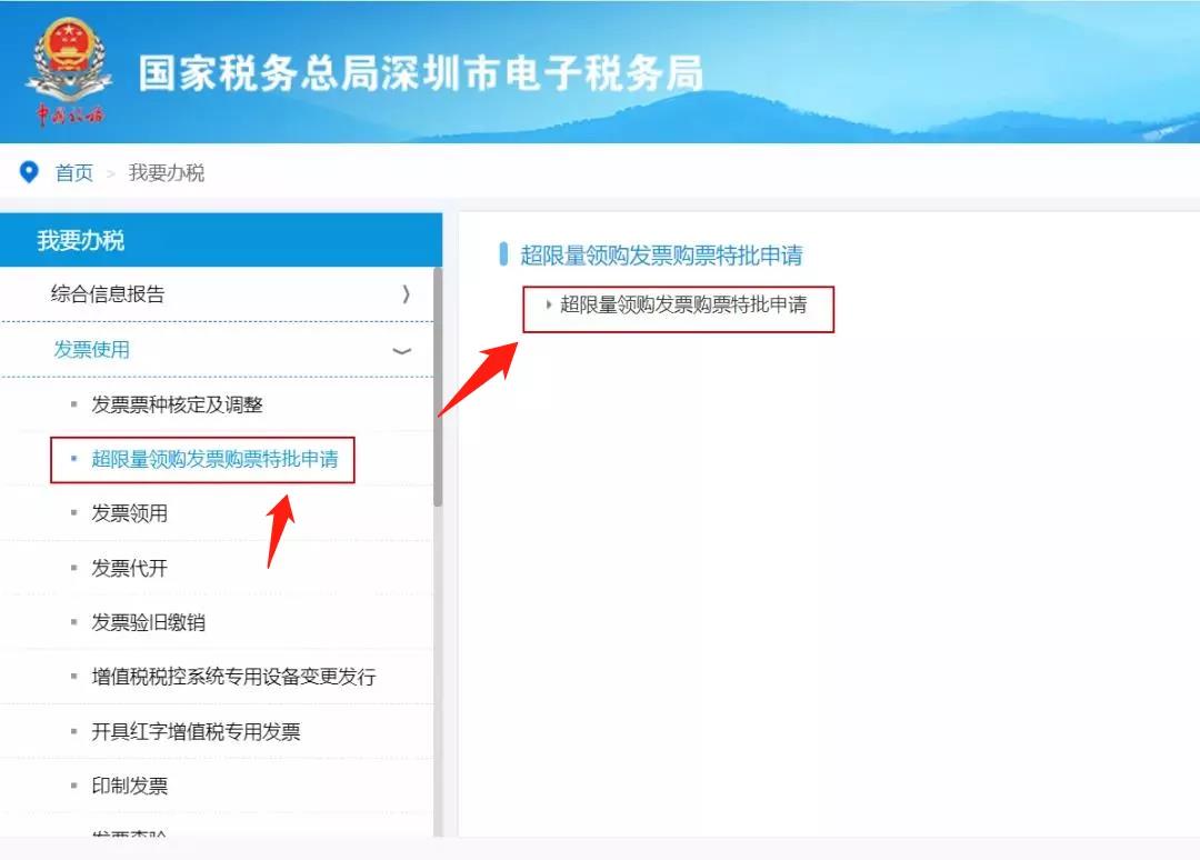 2、點(diǎn)擊“超限量領(lǐng)購發(fā)票購票特批申請”欄目中的“超限量領(lǐng)購發(fā)票購票特批申請”,進(jìn)入辦理頁面。