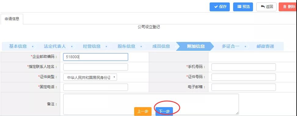 第十一步:根據準備好的注冊資料,填寫企業信息。